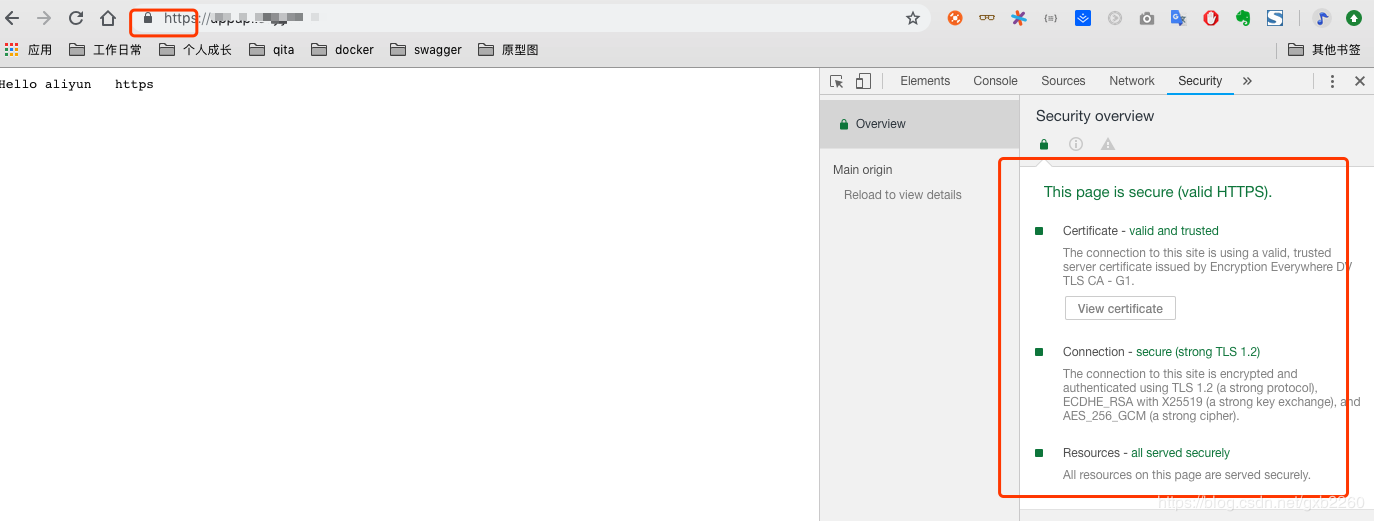 5、验证:在浏览器上输入你配置的域名,然后你就可以看到一个小锁的标志